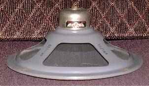 Side view showing the Elac label. I believe that the Rola-Celestion range, later adopted by Vox, was geared to the radio and public address industries pre-1960 and then started to appear in guitar amps. | |